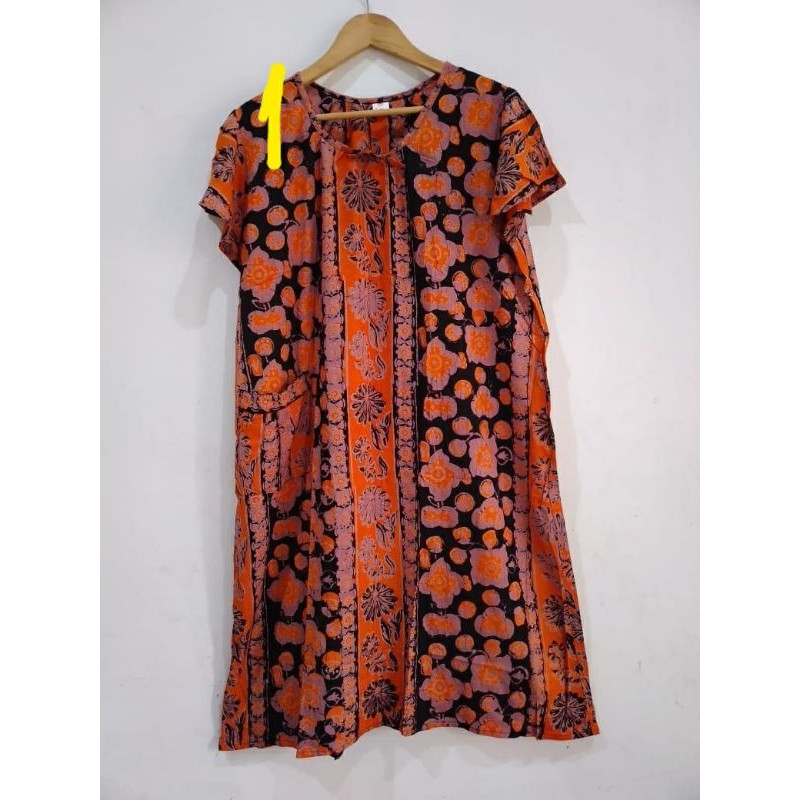 Daster batik untuk orang tua. Daster sejuk segar terbuat dari bahan rayon printing berkualitas dapat dipesan grosir dan ecer dengan harga murah meriah. Model daster simple longgar lebar dan panjang sangat cantik dan anggun utuk baju daster rumahan. Batik berasal dari bahasa Jawa amba yang berarti menulis dan titik.