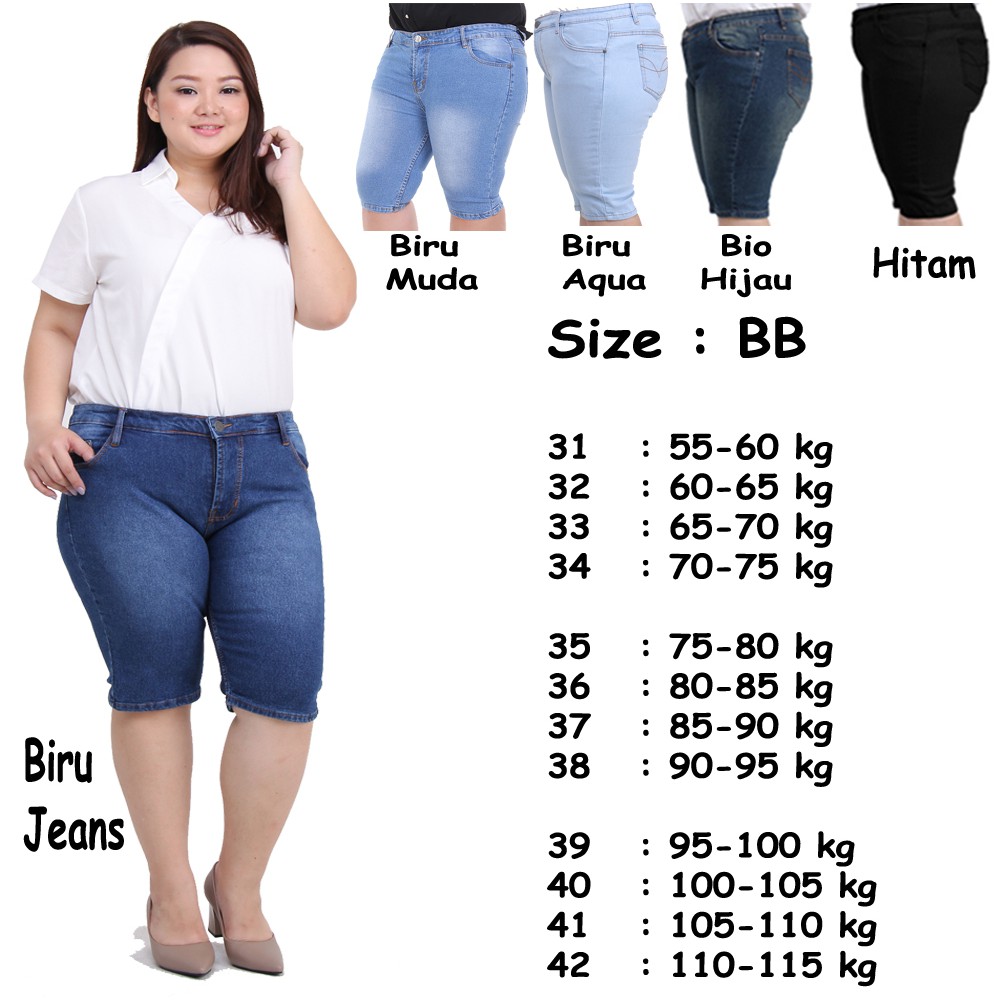 Celana Pendek Jeans Wanita Jumbo Orang Gemuk Big Size Navy Hitam Ukuran Besar Gendut Ab Shopee Indonesia