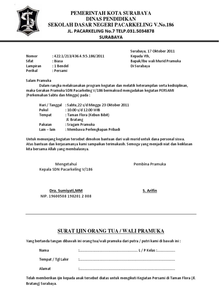 Contoh Surat Izin Orang Tua Untuk Mengikuti Kegiatan Pramuka Nusagates